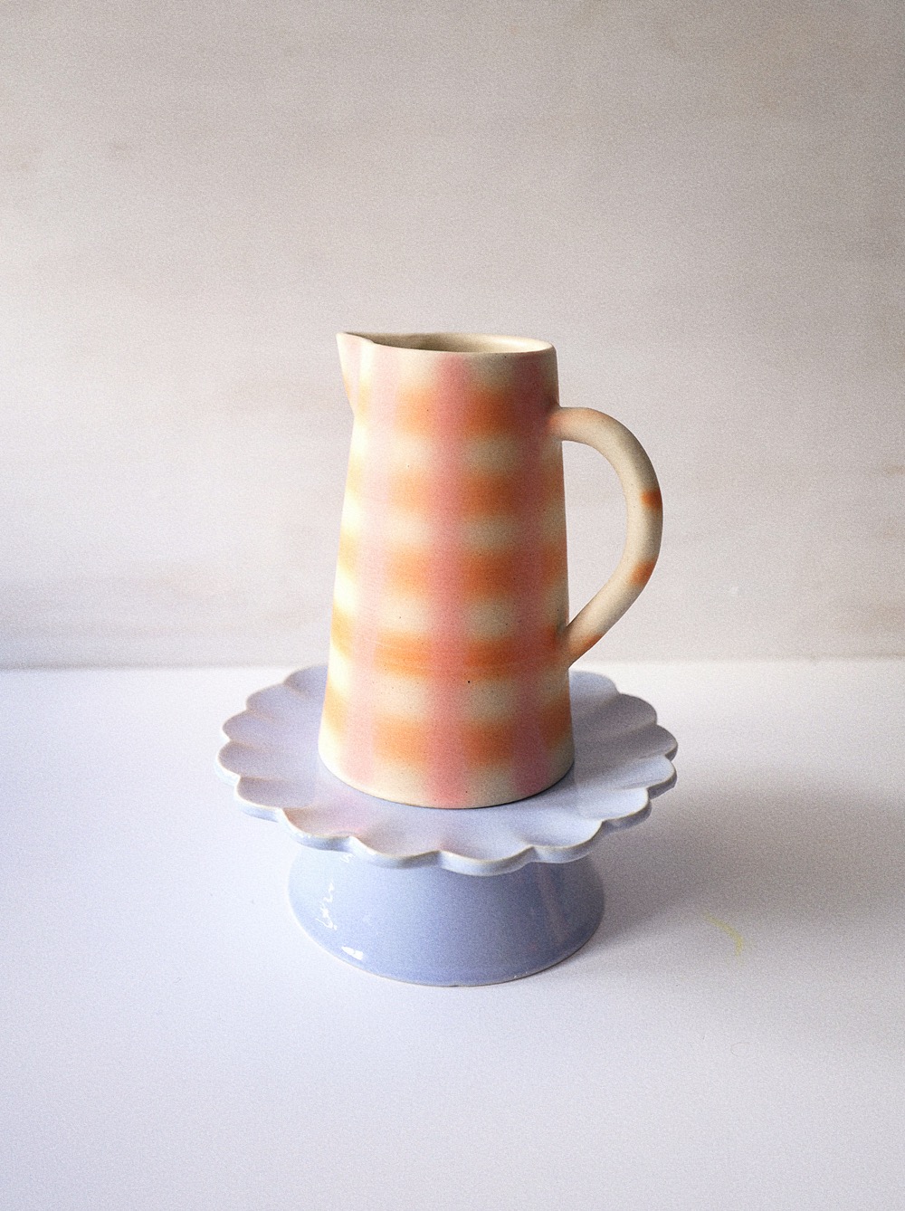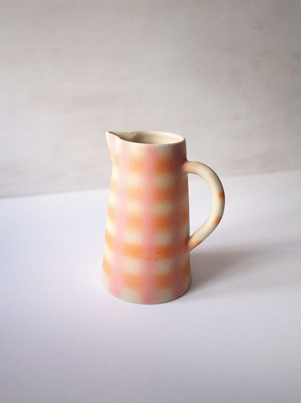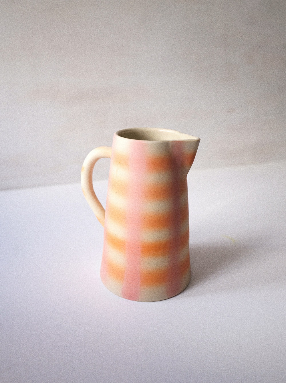 Handmade stoneware jug made from light clay. Hand painted and coated in matte clear glaze on the outside and glossy on the inside.