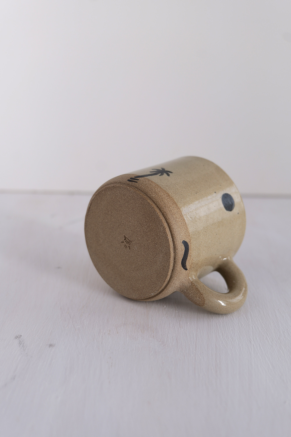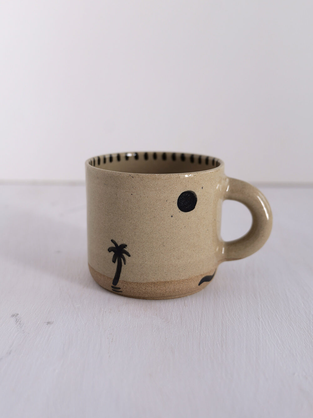 Handmade stoneware mug made from toffee color clay. Handpainted and covered in clear glossy glaze.