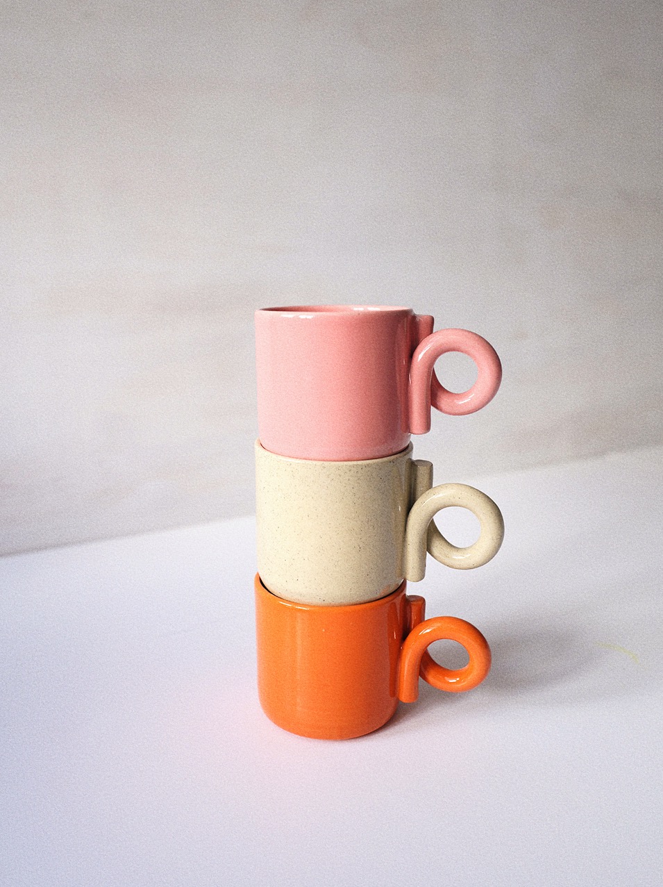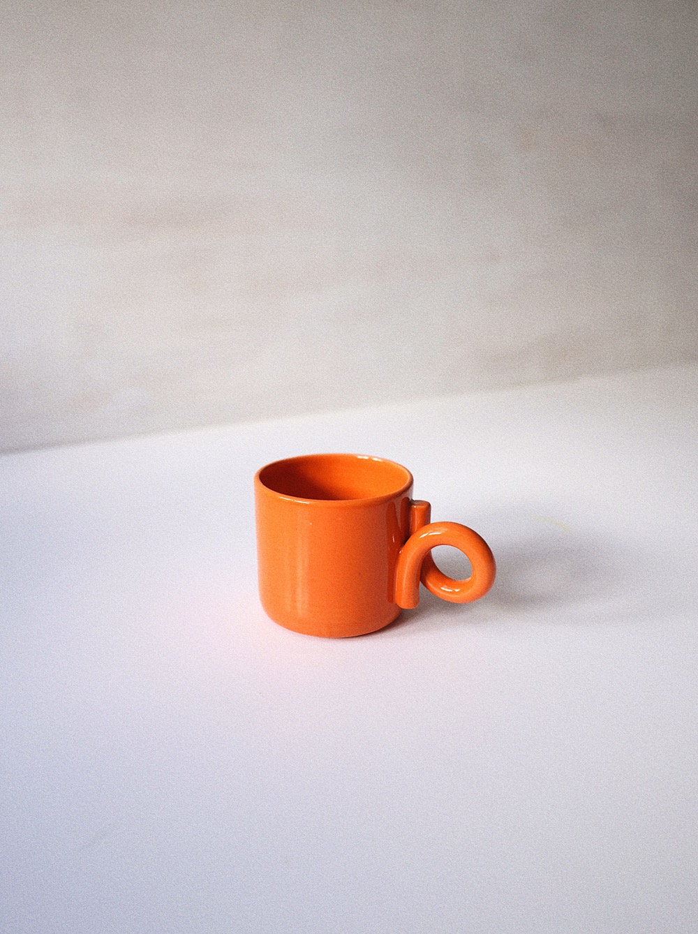 Handmade stoneware mug made from light clay. Coated in orange glossy glaze.