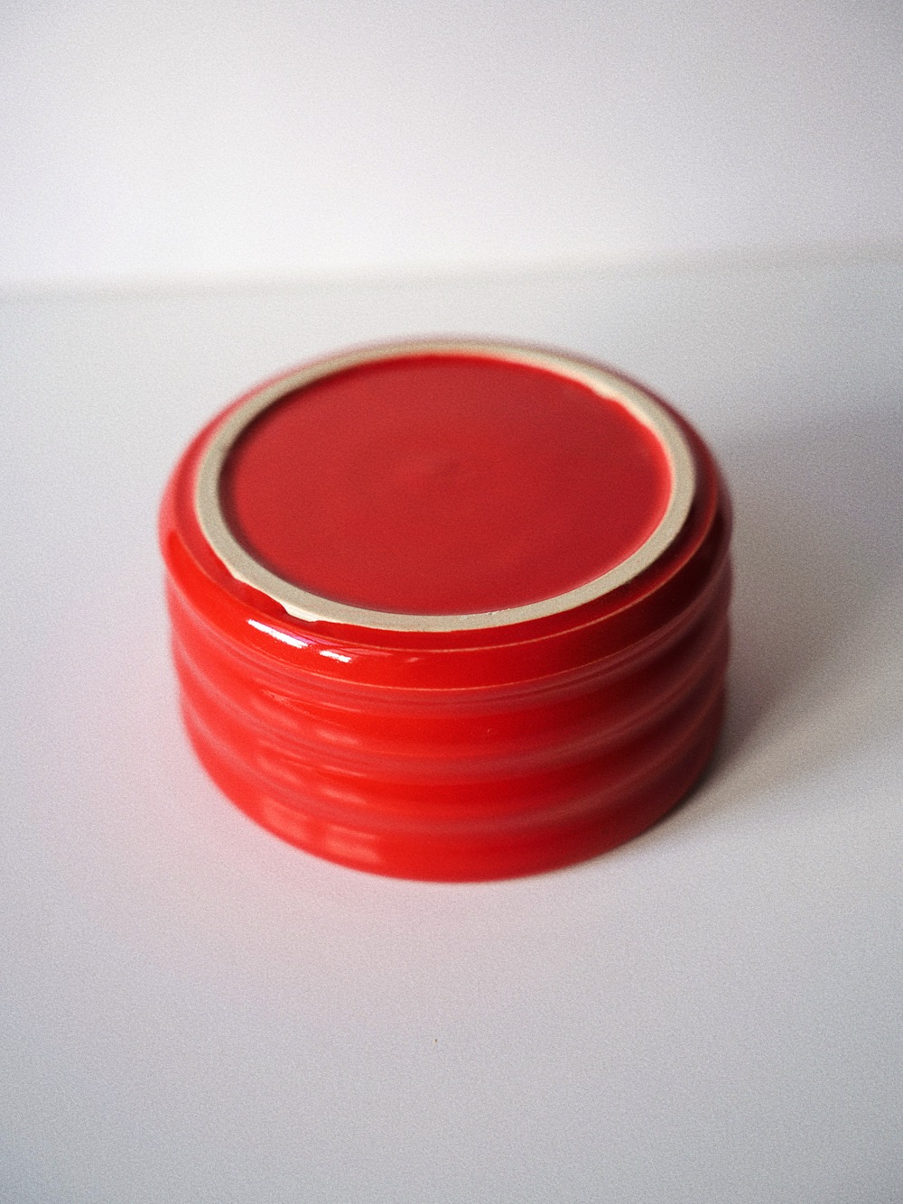 Handmade stoneware cup made from light clay. Handpainted and coated in red glossy glaze.
